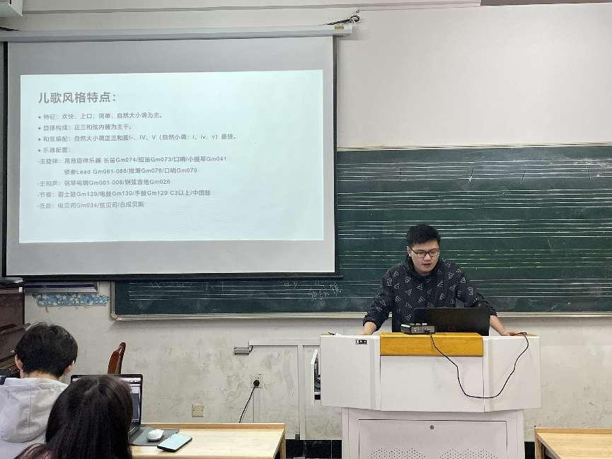 比赛开始,两位参赛教师进行授课,李宗旺以数码音乐制作课程中的《儿童音乐风格编配》为题,从分析儿童音乐的风格特点、选用合适的伴奏音型、为旋律编配和弦等方面展开教学。方尧杨以音乐美学课程中的《中西传统音乐观念比较》为题,在教学过程中,比较了中西传统音乐主题、思维与哲学基础等方面的差异。随后,教研室老师从课程思政的角度,分别对两位参赛教师的教学设计指出不足,并提出中肯的改进意见。老师们一致认为教学设计应紧扣课程思政的主题,思政目标要明确,举例要典型,教学手段要更新,还需把握好课堂时间,活跃课堂气氛。教研室主任彭传山分享了自己参赛的宝贵经验,同时,鼓励参赛教师加强思政理论学习,多磨课,多看优质课。最终,选出李宗旺参加学院决赛。