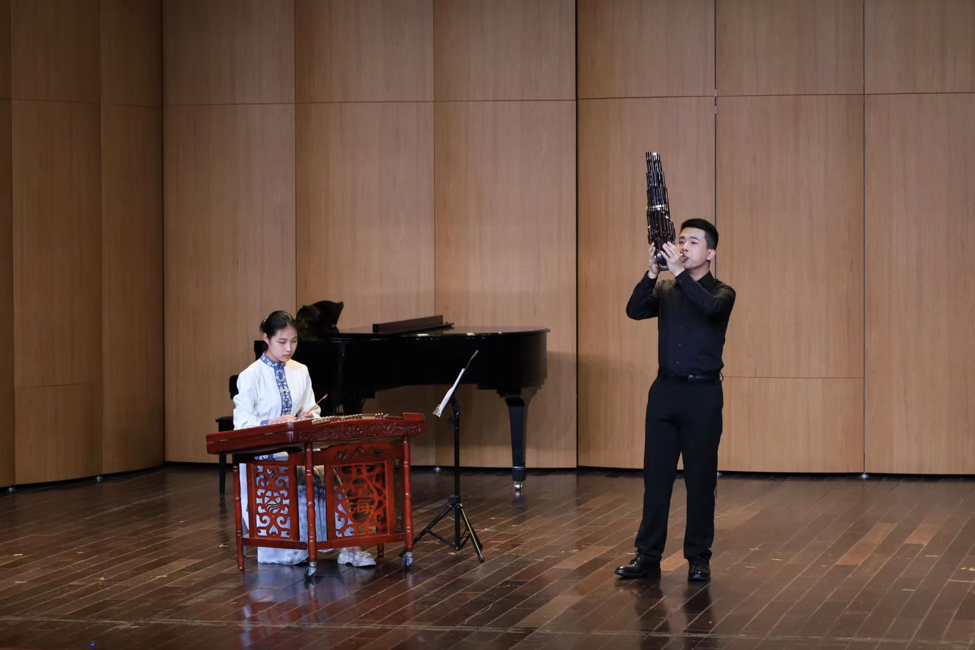 整场演出精彩不断,既有充满生活气息的中国民歌演唱,也有展现各国风采的外国金曲合奏。据本场导演、学院教师刘一朋介绍,与去年不同的是,今年登台表演的青年教师更加年轻化,同时增加了许多不同风格的曲目,填补了笙等乐器演出上的空白。