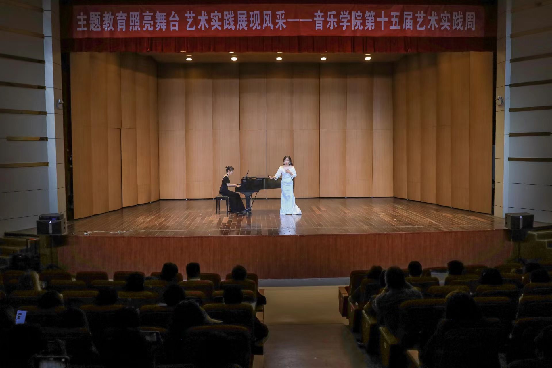 “何处望神州?满眼风光北固楼……”5月26日,在教师杨飞虎伴奏、教师张剑雨演唱的《南乡子·登京口北固亭有怀》旋律中,永利集团304am登录第十五届艺术实践周青年教师专场演出在音乐厅拉开序幕。学院党委书记张铭、副院长徐冉、党委副书记肖之进、副院长彭传山出席活动。9位学院青年教师登上舞台,带来示范表演,400余名学生到场观看演出,享受听觉“盛宴”