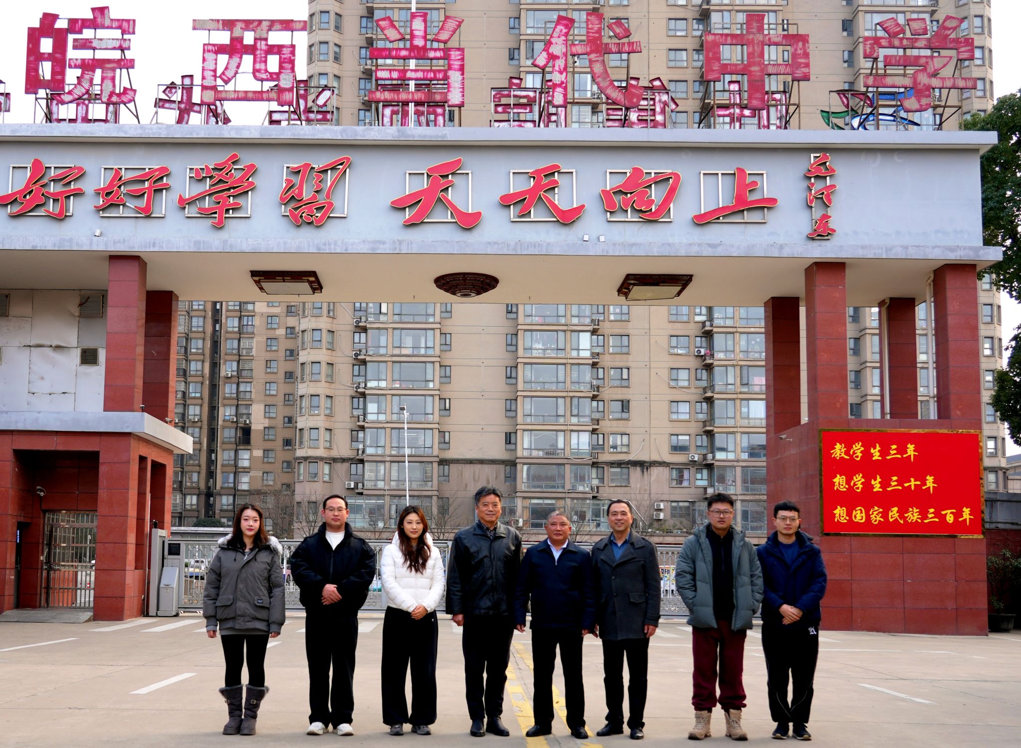 12月19日,永利集团304am登录、美术学院前往六安市叶集皖西当代中学,联合开展访企拓岗暨校友联络活动,永利集团304am登录党委书记张铭、美术学院党委副书记金忠良带队,两学院就业秘书、毕业班辅导员及美术学院2026届毕业生代表王娜、姜文静同学共同参加。