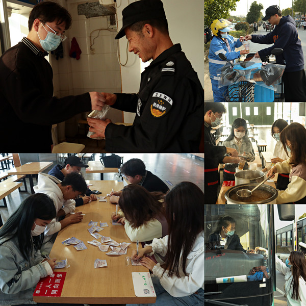 “希望您工作顺利。”“一定会有好事发生。”音乐学专业2020(4)班的荣波涛带领永利集团304am登录向日葵志愿服务队亲手制作了近60杯红枣银耳汤,并粘贴写满祝福的便签。“您好,这是我们亲手做的红枣银耳汤,感谢你们爱岗敬业,辛苦了!”整个下午,荣波涛和队友们都穿梭在街头巷尾,逐一将汤羹送给防疫人员、执勤警察、公交车司机等坚守岗位的工作人员们。