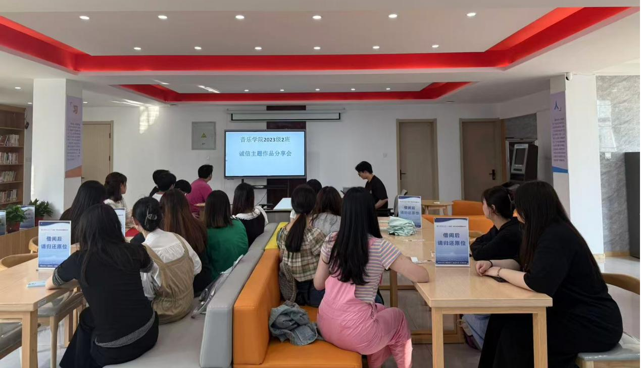 5月29日下午,永利集团304am登录2023级音乐学2班在10号楼二楼阅览室开展诚信主题作品分享会。