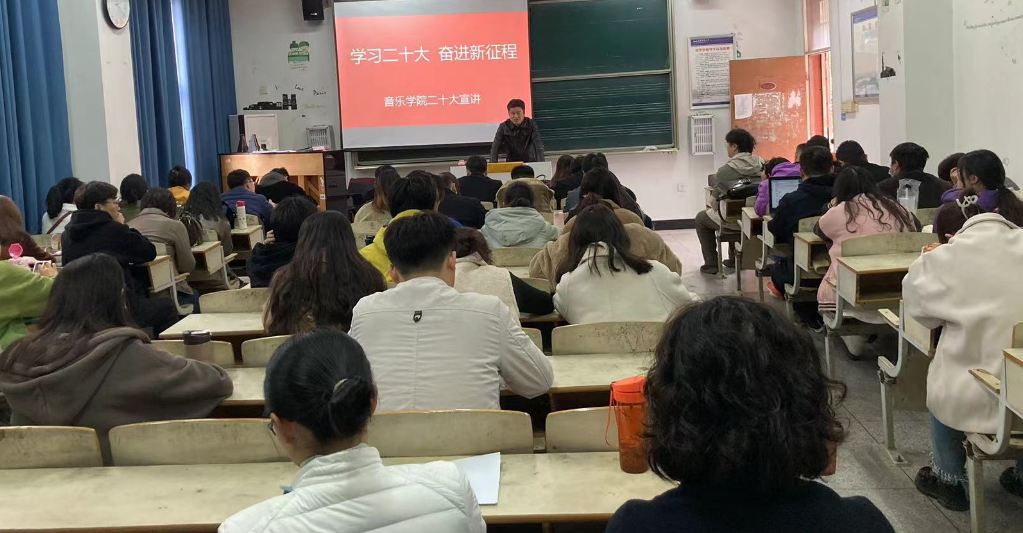 他强调,学院要将学习宣传贯彻党的二十大精神,作为当前和今后一个时期首要的政治任务,学懂弄通习近平新时代中国特色社会主义思想,坚定不移以党的创新理论成果武装头脑,拥护“两个确立”、做到“两个维护”;要结合学院“十四五”事业发展规划,推进发展蓝图的实施,加强教师队伍建设,加大人才引进力度,改善办学条件,补短板,强弱项,不断提高办学水平和人才培养质量。他要求,广大教工要增强教书育人的使命担当,贯彻党的教育方针,刻苦钻研教学科研业务,做“四有”好老师;广大同学要牢记党的教诲,融入新时代奋进的潮流,争做表率,刻苦读书,勇敢拼搏,心存高远,立志成才,争做堪当时代重任、民族复兴大业的好青年。