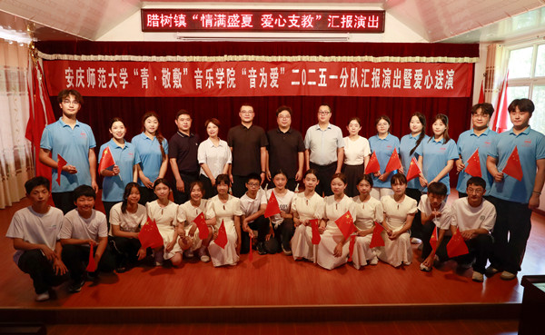 在腊树镇,徐冉、贾涛与共青团怀宁县委副书记何顺祥、腊树镇党委副书记张鹏、腊树初中校长潘凤鸣等,一同观看了“音为爱”团队携手腊树初中学生精心准备的爱心汇演,现场气氛热烈。演出结束后,校地双方举行了总结座谈会。学院领导对怀宁县、腊树镇及腊树初中长期以来对“音为爱”团队实践工作的大力支持表示衷心感谢。与会各方高度评价了团队扎根腊树镇、连续七年开展志愿服务的坚持与贡献,并就深化未来合作进行了深入交流。